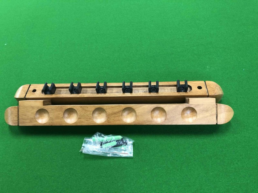 Oak Cue Rack features high-quality wood construction, solid and durable.